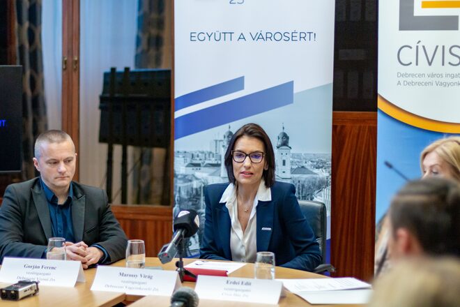 A Debreceni Vagyonkezelő Zrt. egyik tagvállalatánál, a Cívis Ház Zrt. Iparkamara utcai székházában tartott sajtótájékoztatón Marossy Virág vezérigazgató ismertette a holding elmúlt évi eredményeit, a város és a lakosság számára nyújtott szolgáltatásokat, valamint a jubileumi, 25. évforduló legfontosabb üzeneteit.