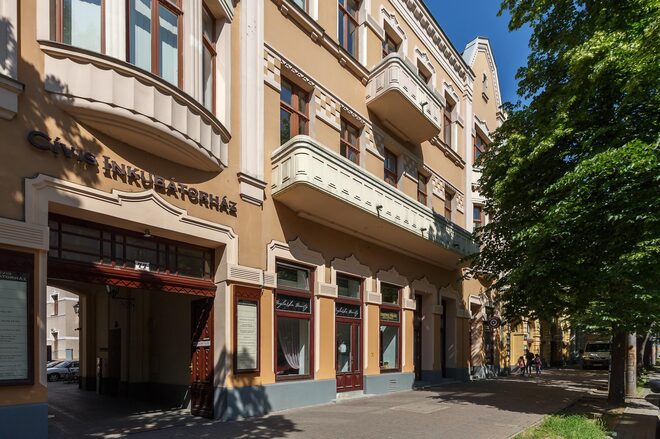 Befejeződött a Piac utca 77. szám alatti Cívis Inkubátorház utcai homlokzatának megújítása. A projekt részeként az utcai portálok cseréje is megtörtént.